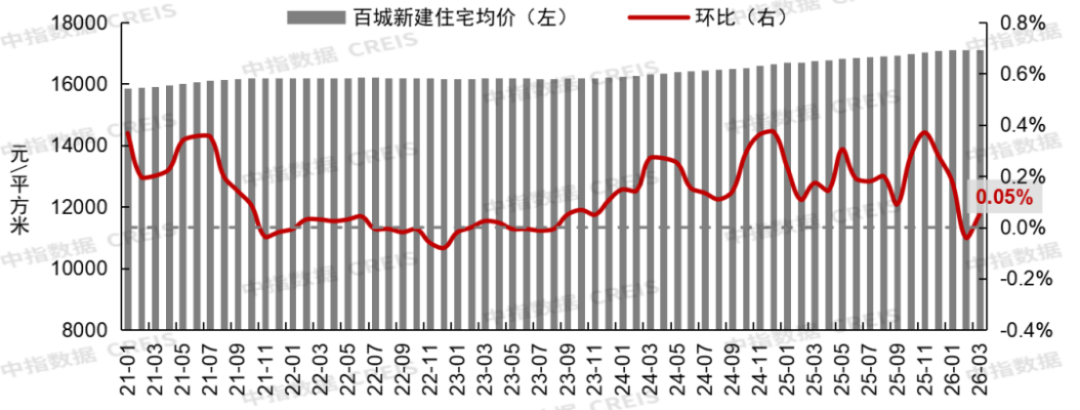 3月份,百城新建住宅均价为17115/㎡,环比上涨0.05%;百城二手住宅均价12792/㎡,环比下跌0.34%,跌幅连续三个月收窄。